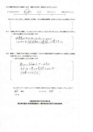 Q.『当院に対する励ましのお言葉』『これから当院を受診される患者さんへの励ましの言葉』をいただけましたら、ぜひお聞かせ下さい。