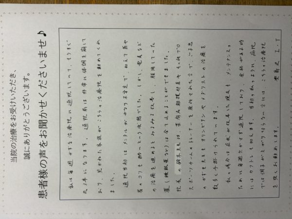 ありがたいお言葉をいただきましたので、掲載させていただきます。